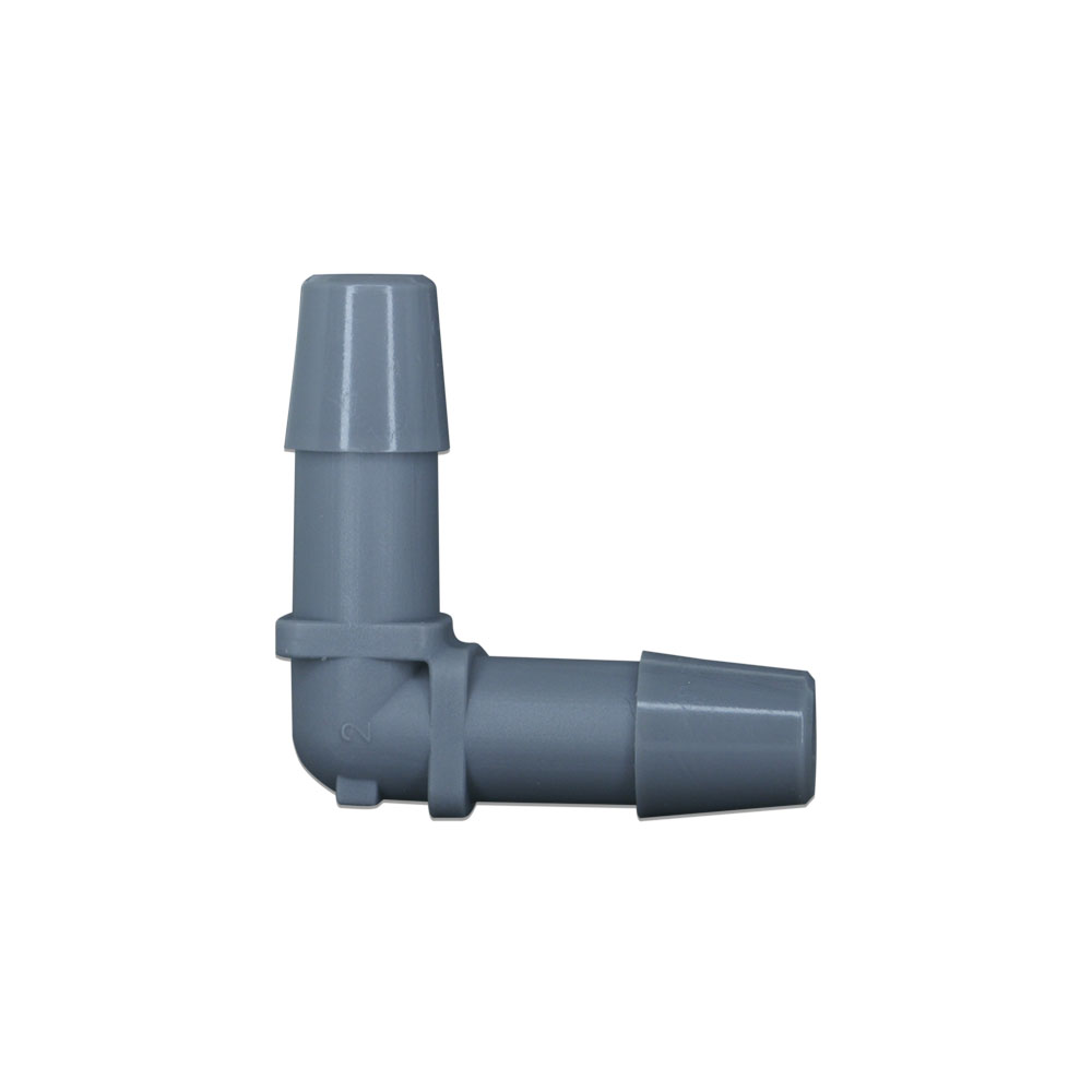| GEN1-L-6B | 3/8 inch Single Barb Elbow | Glass-Filled Nylon (Black Available) Nylon (Black Available) Kynar® (Gray Available) Polypropylene |